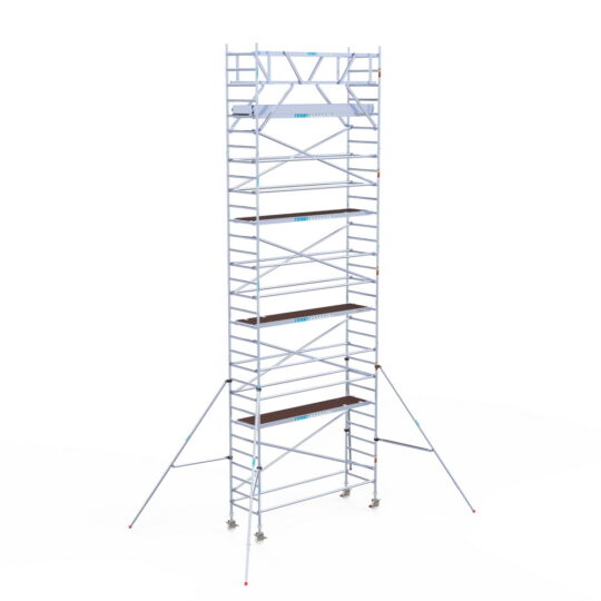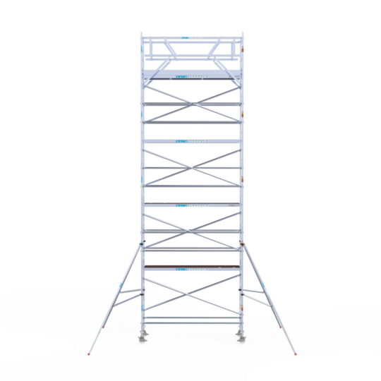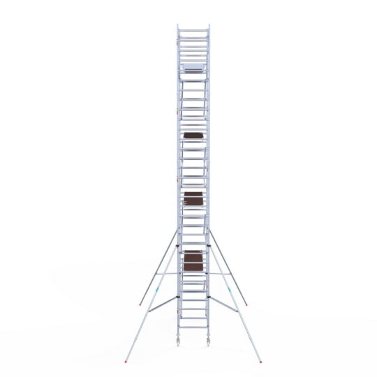 190 cm: Dit is de kleinste standaardmaat voor rolsteigers. Uitzonderingen zijn extra compacte kamersteigers of 1-persoonssteigers, die vaak platformlengtes van 120, 140 of 165 cm hebben. De 190 cm-variant wordt veel gebruikt bij kamersteigers en biedt voldoende ruimte om alleen comfortabel te werken.