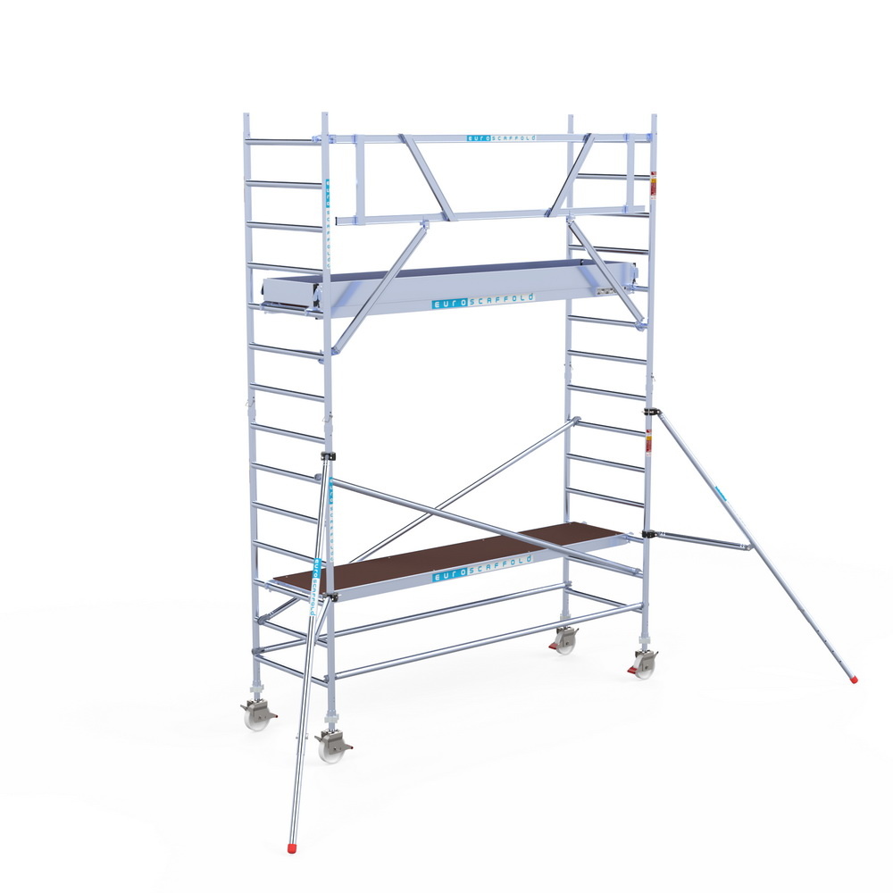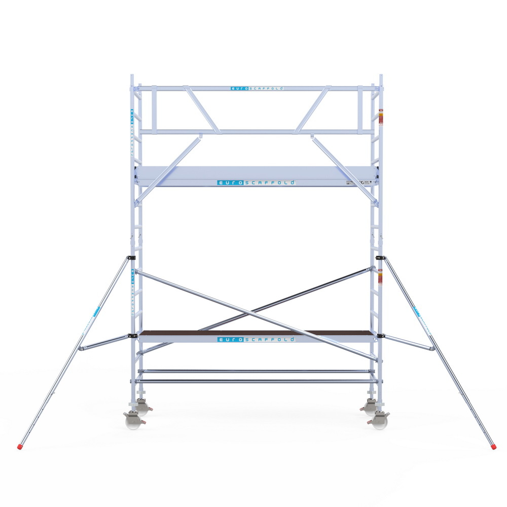 De Original mobiele steiger van Euroscaffold is een opbouwsteiger samengesteld met schoren en op de bovenste etage voorloopleuningen. Wij bieden de Original aan in uitvoeringen bij gebruik bij een gevel (één voorloopleunging en in vrijstaande uitvoeringen (twee voorloopleuningen) conform de  Betrouwbaar bij elke klus.EN1004. Betrouwbaar bij elke klus..