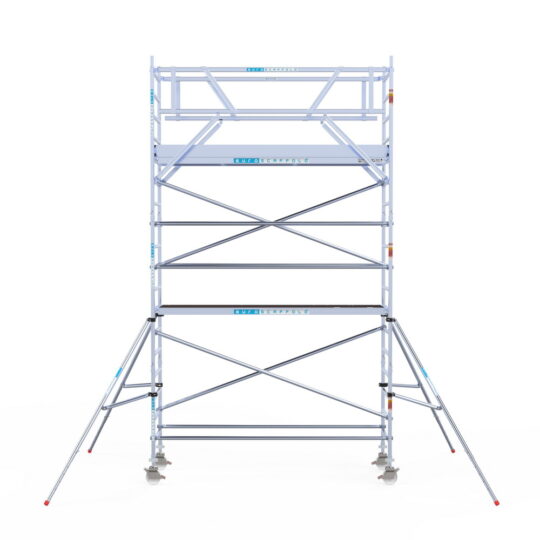 190 cm: Dit is de kleinste standaardmaat voor rolsteigers. Uitzonderingen zijn extra compacte kamersteigers of 1-persoonssteigers, die vaak platformlengtes van 120, 140 of 165 cm hebben. De 190 cm-variant wordt veel gebruikt bij kamersteigers en biedt voldoende ruimte om alleen comfortabel te werken.