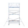 190 cm: Dit is de kleinste standaardmaat voor rolsteigers. Uitzonderingen zijn extra compacte kamersteigers of 1-persoonssteigers, die vaak platformlengtes van 120, 140 of 165 cm hebben. De 190 cm-variant wordt veel gebruikt bij kamersteigers en biedt voldoende ruimte om alleen comfortabel te werken.