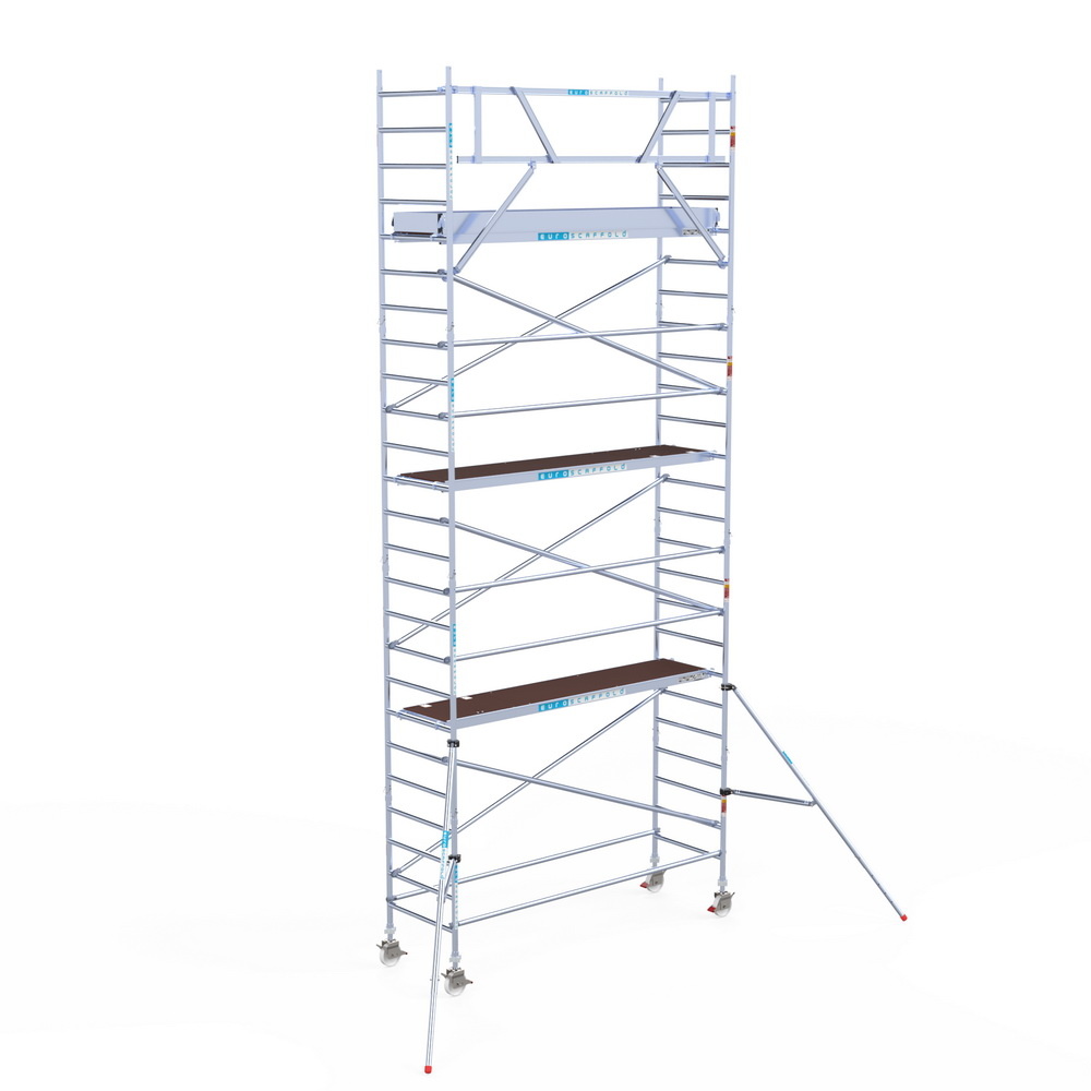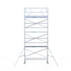 190 cm: Dit is de kleinste standaardmaat voor rolsteigers. Uitzonderingen zijn extra compacte kamersteigers of 1-persoonssteigers, die vaak platformlengtes van 120, 140 of 165 cm hebben. De 190 cm-variant wordt veel gebruikt bij kamersteigers en biedt voldoende ruimte om alleen comfortabel te werken.