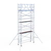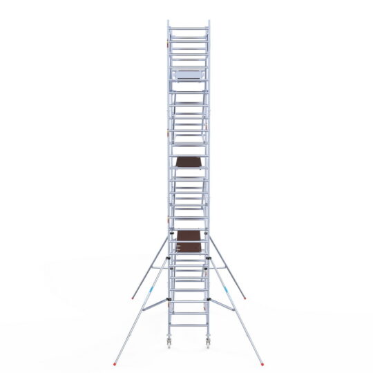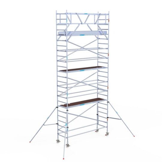 190 cm: Dit is de kleinste standaardmaat voor rolsteigers. Uitzonderingen zijn extra compacte kamersteigers of 1-persoonssteigers, die vaak platformlengtes van 120, 140 of 165 cm hebben. De 190 cm-variant wordt veel gebruikt bij kamersteigers en biedt voldoende ruimte om alleen comfortabel te werken.