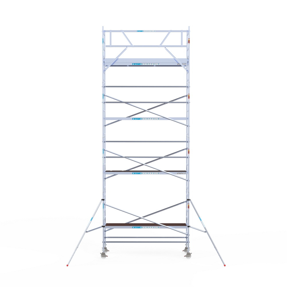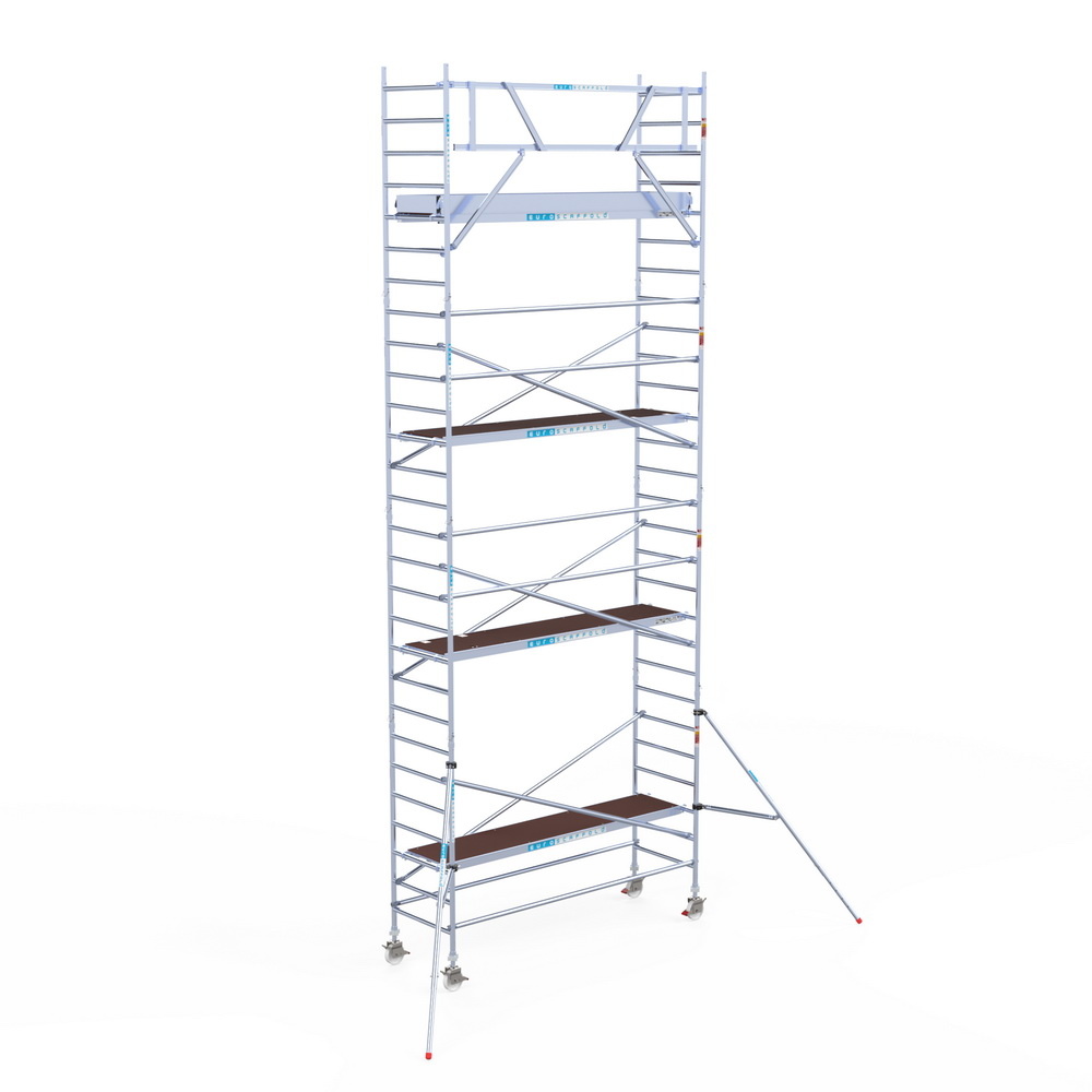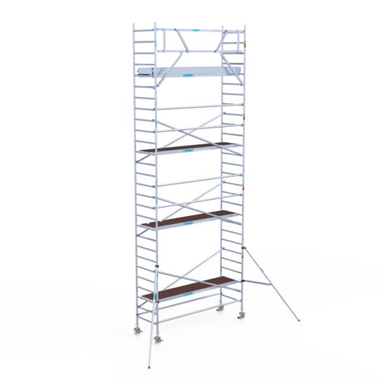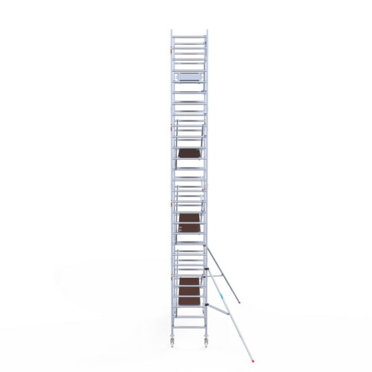 190 cm: Dit is de kleinste standaardmaat voor rolsteigers. Uitzonderingen zijn extra compacte kamersteigers of 1-persoonssteigers, die vaak platformlengtes van 120, 140 of 165 cm hebben. De 190 cm-variant wordt veel gebruikt bij kamersteigers en biedt voldoende ruimte om alleen comfortabel te werken.