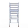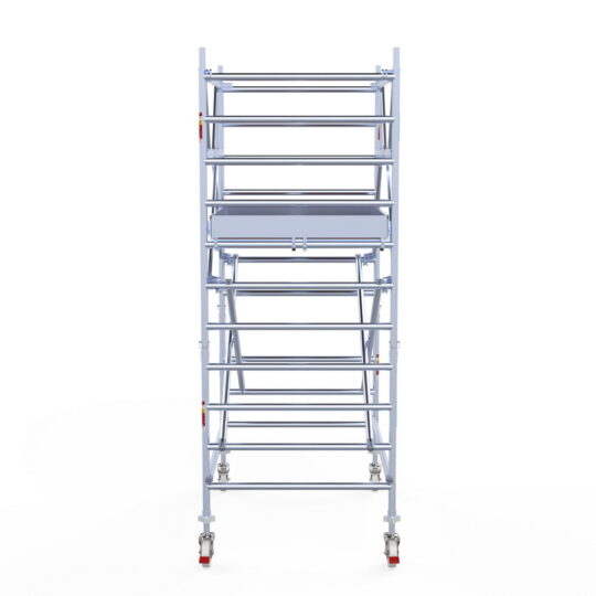 190 cm: Dit is de kleinste standaardmaat voor rolsteigers. Uitzonderingen zijn extra compacte kamersteigers of 1-persoonssteigers, die vaak platformlengtes van 120, 140 of 165 cm hebben. De 190 cm-variant wordt veel gebruikt bij kamersteigers en biedt voldoende ruimte om alleen comfortabel te werken.