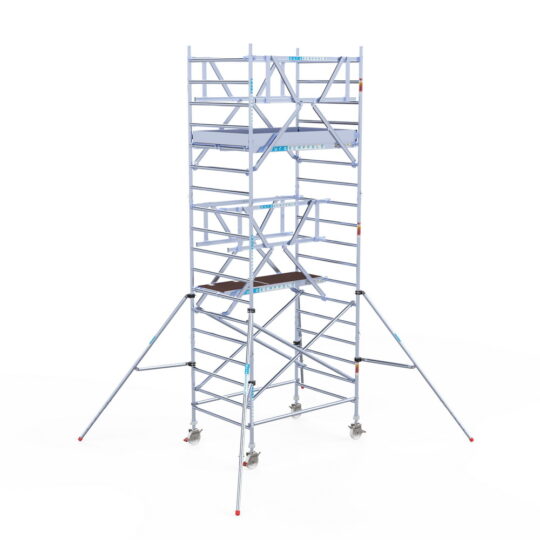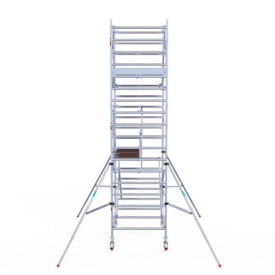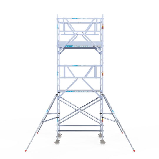 190 cm: Dit is de kleinste standaardmaat voor rolsteigers. Uitzonderingen zijn extra compacte kamersteigers of 1-persoonssteigers, die vaak platformlengtes van 120, 140 of 165 cm hebben. De 190 cm-variant wordt veel gebruikt bij kamersteigers en biedt voldoende ruimte om alleen comfortabel te werken.