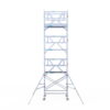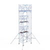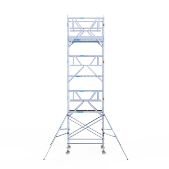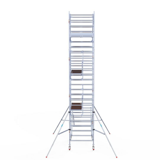 190 cm: Dit is de kleinste standaardmaat voor rolsteigers. Uitzonderingen zijn extra compacte kamersteigers of 1-persoonssteigers, die vaak platformlengtes van 120, 140 of 165 cm hebben. De 190 cm-variant wordt veel gebruikt bij kamersteigers en biedt voldoende ruimte om alleen comfortabel te werken.