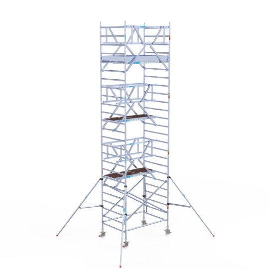 De Professional verrijdbare steiger van Euroscaffold is een volledig uitgevoerde professionele verrijdbare steiger volgens de professionele regelgeving EN1004. Dat maakt de klus net wat makkelijker. De opbouwsteiger is uitgevoerd met inzet van één voorloopleuning per etage bij toepassing bij een gevel, en 2 voorloopleuningen per etage bij vrijstaand toepassing. .