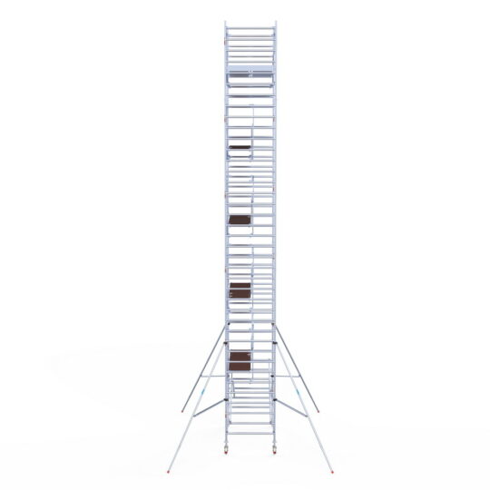 305 cm: Dit is, naast de zeldzame 400 cm-variant, de grootste standaardmaat. Deze lengte is ideaal als je de steiger regelmatig moet verplaatsen, omdat je met een langer platform minder vaak hoeft te herpositioneren. Deze platformlengte is zwaar, wij adviseren hier altijd voor carbon te kiezen.