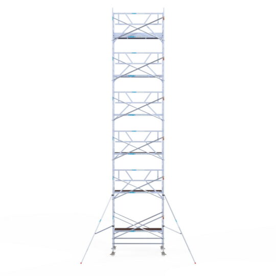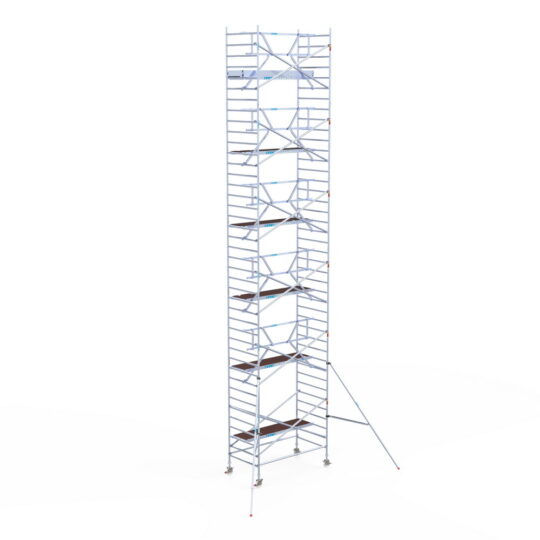 De Professional mobiele steiger van Euroscaffold is een alles-in-een uitgevoerde professionele mobiele steiger volgens de professionele regelgeving EN1004. Daarmee ben je snel aan de slag. De opbouwsteiger is uitgevoerd met behulp van één voorloopleuning per etage ten behoeve van inzet bij een gevel, en 2 voorloopleuningen per etage ten behoeve van vrijstaand inzet. .