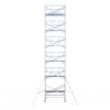 190 cm: Dit is de kleinste standaardmaat voor rolsteigers. Uitzonderingen zijn extra compacte kamersteigers of 1-persoonssteigers, die vaak platformlengtes van 120, 140 of 165 cm hebben. De 190 cm-variant wordt veel gebruikt bij kamersteigers en biedt voldoende ruimte om alleen comfortabel te werken.