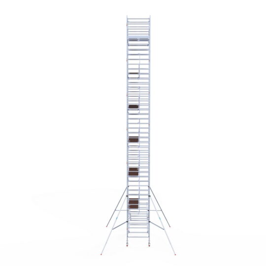 De Professional mobiele steiger van Euroscaffold is een alles-in-een uitgevoerde professionele mobiele steiger volgens de professionele regelgeving EN1004. Zo werk je comfortabel én veilig. De opbouwsteiger is uitgevoerd met één voorloopleuning per etage ten behoeve van inzet bij een gevel, en 2 voorloopleuningen per etage ten behoeve van vrijstaand inzet. .