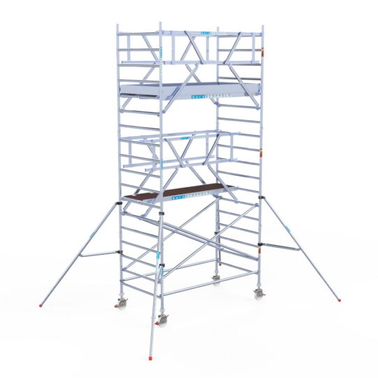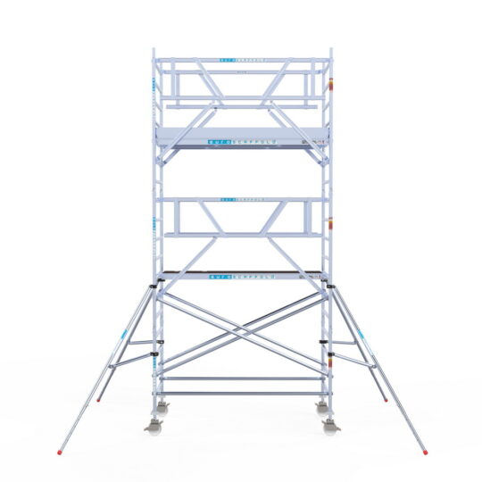 De Professional verrijdbare steiger van Euroscaffold is een compleet uitgevoerde professionele verrijdbare steiger volgens de professionele regelgeving EN1004. Daarmee ben je snel aan de slag. De opbouwsteiger is uitgevoerd met behulp van één voorloopleuning per etage bij gebruik bij een gevel, en 2 voorloopleuningen per etage bij vrijstaand gebruik. .