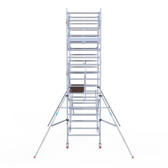 190 cm: Dit is de kleinste standaardmaat voor rolsteigers. Uitzonderingen zijn extra compacte kamersteigers of 1-persoonssteigers, die vaak platformlengtes van 120, 140 of 165 cm hebben. De 190 cm-variant wordt veel gebruikt bij kamersteigers en biedt voldoende ruimte om alleen comfortabel te werken.