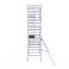 190 cm: Dit is de kleinste standaardmaat voor rolsteigers. Uitzonderingen zijn extra compacte kamersteigers of 1-persoonssteigers, die vaak platformlengtes van 120, 140 of 165 cm hebben. De 190 cm-variant wordt veel gebruikt bij kamersteigers en biedt voldoende ruimte om alleen comfortabel te werken.