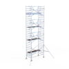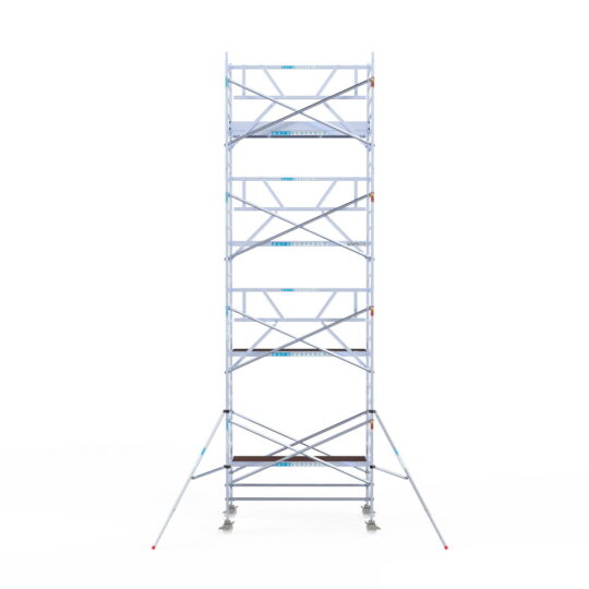 190 cm: Dit is de kleinste standaardmaat voor rolsteigers. Uitzonderingen zijn extra compacte kamersteigers of 1-persoonssteigers, die vaak platformlengtes van 120, 140 of 165 cm hebben. De 190 cm-variant wordt veel gebruikt bij kamersteigers en biedt voldoende ruimte om alleen comfortabel te werken.