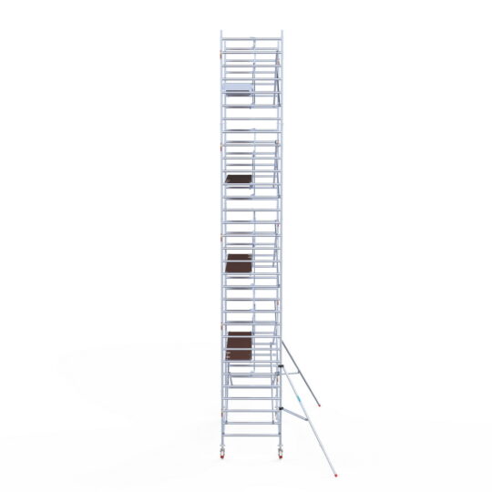 De Professional verrijdbare steiger van Euroscaffold is een compleet uitgevoerde professionele verrijdbare steiger volgens de professionele regelgeving EN1004. Daarmee ben je snel aan de slag. De werksteiger is uitgevoerd met één voorloopleuning per etage bij gebruik bij een gevel, en 2 voorloopleuningen per etage bij vrijstaand gebruik. .