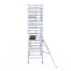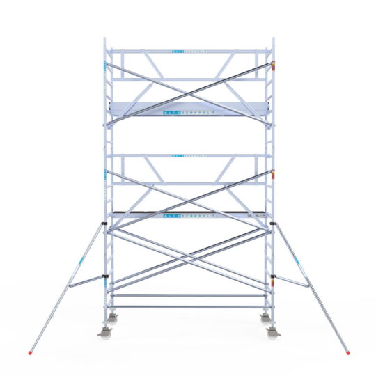 190 cm: Dit is de kleinste standaardmaat voor rolsteigers. Uitzonderingen zijn extra compacte kamersteigers of 1-persoonssteigers, die vaak platformlengtes van 120, 140 of 165 cm hebben. De 190 cm-variant wordt veel gebruikt bij kamersteigers en biedt voldoende ruimte om alleen comfortabel te werken.
