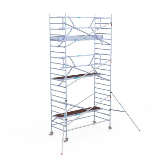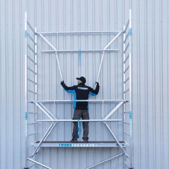 De Professional rolsteiger van Euroscaffold is een alles-in-een uitgevoerde professionele rolsteiger volgens de professionele regelgeving EN1004. Dat maakt de klus net wat makkelijker. De werksteiger is uitgevoerd met één voorloopleuning per etage ten behoeve van gebruik bij een gevel, en 2 voorloopleuningen per etage ten behoeve van vrijstaand gebruik. .