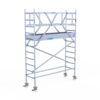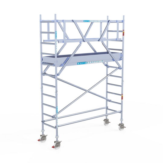 190 cm: Dit is de kleinste standaardmaat voor rolsteigers. Uitzonderingen zijn extra compacte kamersteigers of 1-persoonssteigers, die vaak platformlengtes van 120, 140 of 165 cm hebben. De 190 cm-variant wordt veel gebruikt bij kamersteigers en biedt voldoende ruimte om alleen comfortabel te werken.