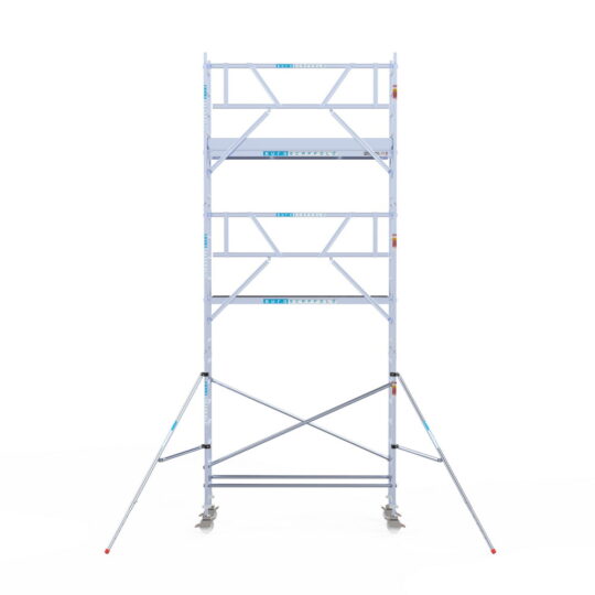 190 cm: Dit is de kleinste standaardmaat voor rolsteigers. Uitzonderingen zijn extra compacte kamersteigers of 1-persoonssteigers, die vaak platformlengtes van 120, 140 of 165 cm hebben. De 190 cm-variant wordt veel gebruikt bij kamersteigers en biedt voldoende ruimte om alleen comfortabel te werken.