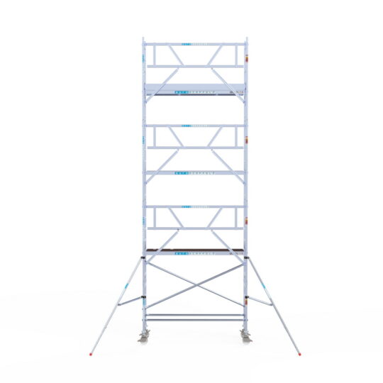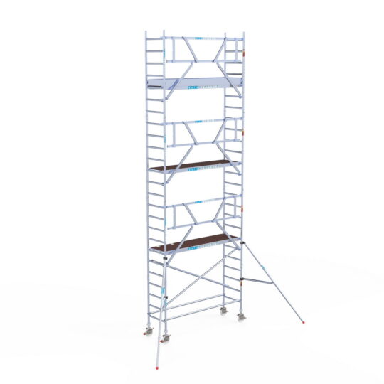 190 cm: Dit is de kleinste standaardmaat voor rolsteigers. Uitzonderingen zijn extra compacte kamersteigers of 1-persoonssteigers, die vaak platformlengtes van 120, 140 of 165 cm hebben. De 190 cm-variant wordt veel gebruikt bij kamersteigers en biedt voldoende ruimte om alleen comfortabel te werken.