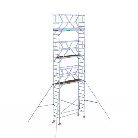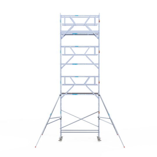 190 cm: Dit is de kleinste standaardmaat voor rolsteigers. Uitzonderingen zijn extra compacte kamersteigers of 1-persoonssteigers, die vaak platformlengtes van 120, 140 of 165 cm hebben. De 190 cm-variant wordt veel gebruikt bij kamersteigers en biedt voldoende ruimte om alleen comfortabel te werken.
