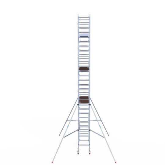 305 cm: Dit is, naast de zeldzame 400 cm-variant, de grootste standaardmaat. Deze lengte is ideaal als je de steiger regelmatig moet verplaatsen, omdat je met een langer platform minder vaak hoeft te herpositioneren. Deze platformlengte is zwaar, wij adviseren hier altijd voor carbon te kiezen.