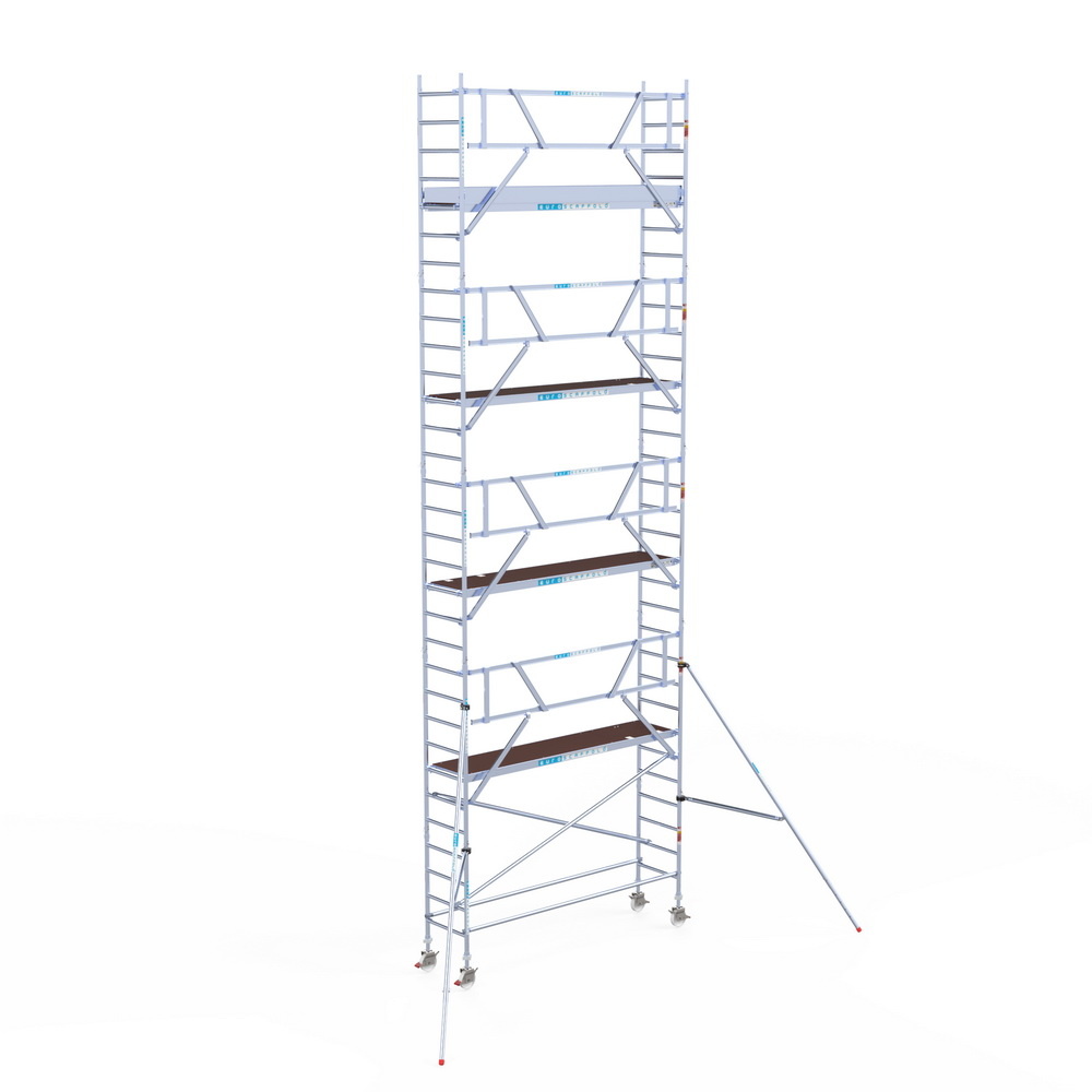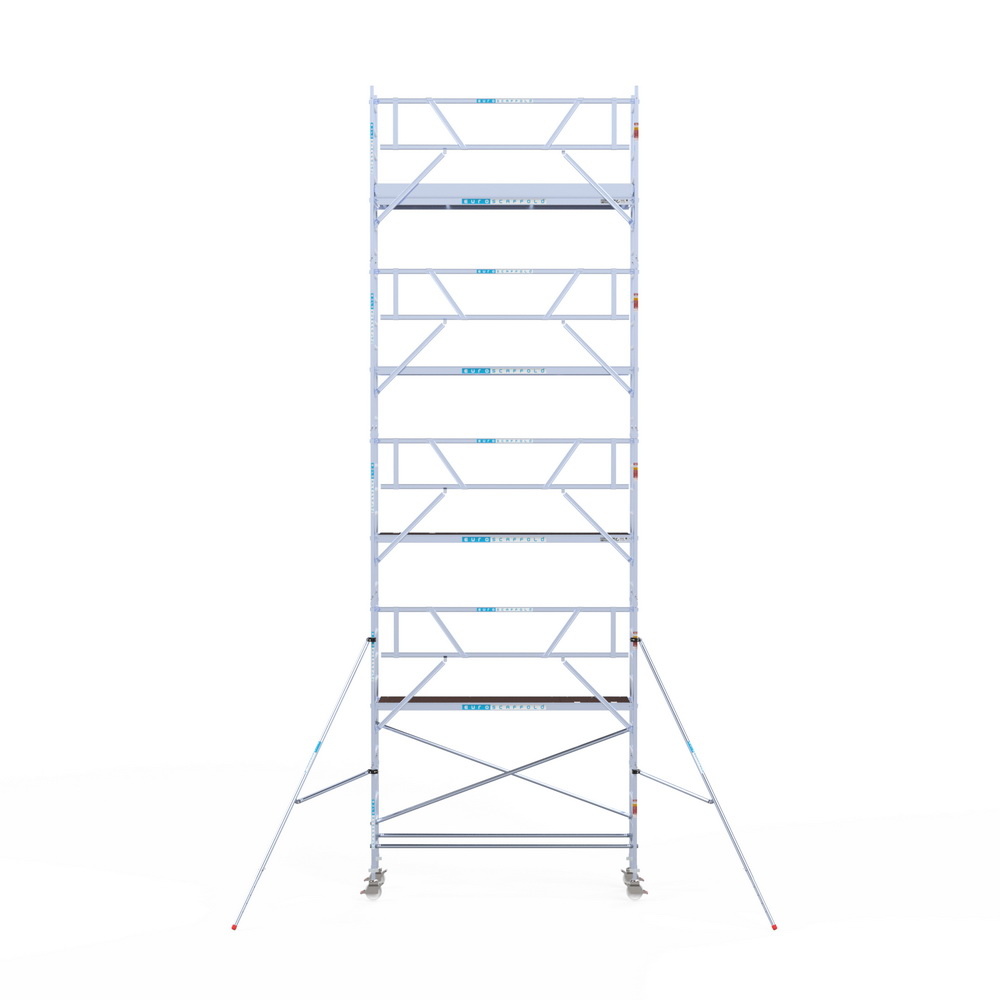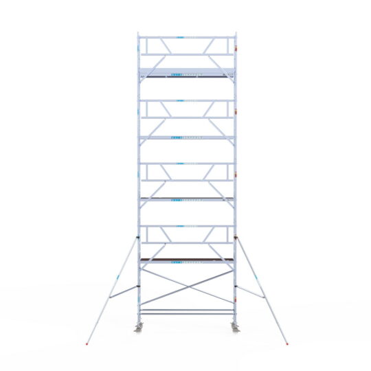 190 cm: Dit is de kleinste standaardmaat voor rolsteigers. Uitzonderingen zijn extra compacte kamersteigers of 1-persoonssteigers, die vaak platformlengtes van 120, 140 of 165 cm hebben. De 190 cm-variant wordt veel gebruikt bij kamersteigers en biedt voldoende ruimte om alleen comfortabel te werken.