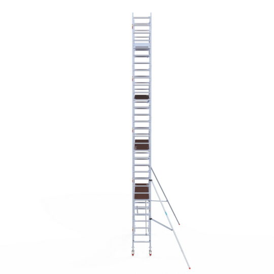 305 cm: Dit is, naast de zeldzame 400 cm-variant, de grootste standaardmaat. Deze lengte is ideaal als je de steiger regelmatig moet verplaatsen, omdat je met een langer platform minder vaak hoeft te herpositioneren. Deze platformlengte is zwaar, wij adviseren hier altijd voor carbon te kiezen.