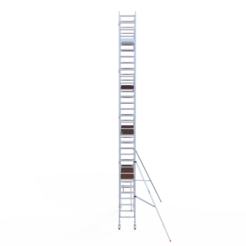 De Professional verrijdbare steiger van Euroscaffold is een alles-in-een uitgevoerde professionele verrijdbare steiger volgens de professionele regelgeving EN1004. Zo werk je comfortabel én veilig. De werksteiger is uitgevoerd met inzet van één voorloopleuning per etage ten behoeve van gebruik bij een gevel, en 2 voorloopleuningen per etage ten behoeve van vrijstaand gebruik. .