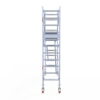 190 cm: Dit is de kleinste standaardmaat voor rolsteigers. Uitzonderingen zijn extra compacte kamersteigers of 1-persoonssteigers, die vaak platformlengtes van 120, 140 of 165 cm hebben. De 190 cm-variant wordt veel gebruikt bij kamersteigers en biedt voldoende ruimte om alleen comfortabel te werken.