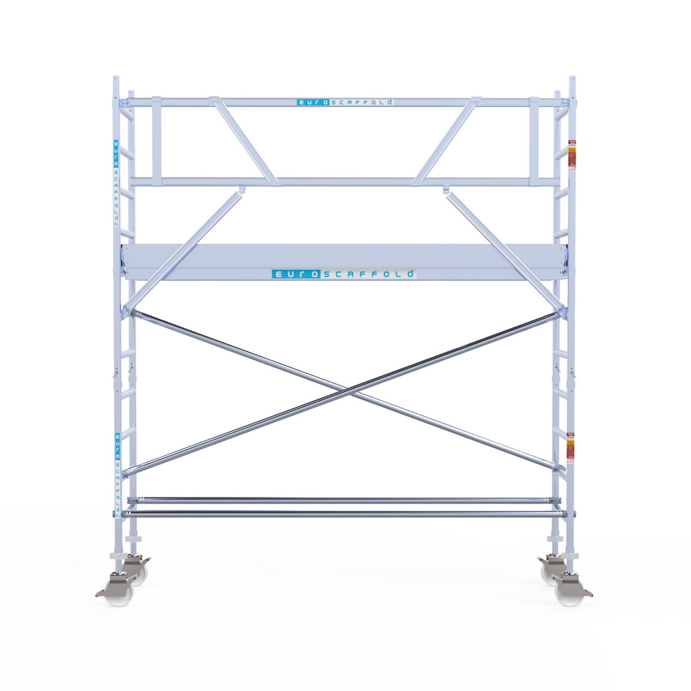 De Professional rolsteiger van Euroscaffold is een alles-in-een uitgevoerde professionele rolsteiger volgens de professionele regelgeving EN1004. Daarmee ben je snel aan de slag. De werksteiger is uitgevoerd met behulp van één voorloopleuning per etage voor inzet bij een gevel, en 2 voorloopleuningen per etage voor vrijstaand inzet. .