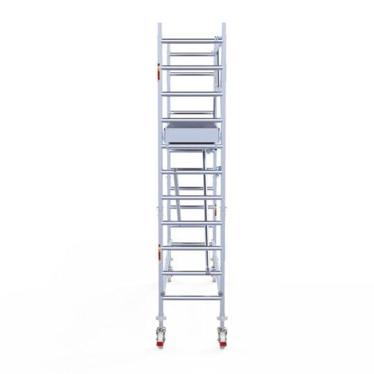 190 cm: Dit is de kleinste standaardmaat voor rolsteigers. Uitzonderingen zijn extra compacte kamersteigers of 1-persoonssteigers, die vaak platformlengtes van 120, 140 of 165 cm hebben. De 190 cm-variant wordt veel gebruikt bij kamersteigers en biedt voldoende ruimte om alleen comfortabel te werken.