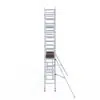 190 cm: Dit is de kleinste standaardmaat voor rolsteigers. Uitzonderingen zijn extra compacte kamersteigers of 1-persoonssteigers, die vaak platformlengtes van 120, 140 of 165 cm hebben. De 190 cm-variant wordt veel gebruikt bij kamersteigers en biedt voldoende ruimte om alleen comfortabel te werken.