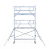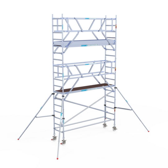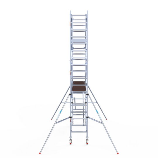190 cm: Dit is de kleinste standaardmaat voor rolsteigers. Uitzonderingen zijn extra compacte kamersteigers of 1-persoonssteigers, die vaak platformlengtes van 120, 140 of 165 cm hebben. De 190 cm-variant wordt veel gebruikt bij kamersteigers en biedt voldoende ruimte om alleen comfortabel te werken.