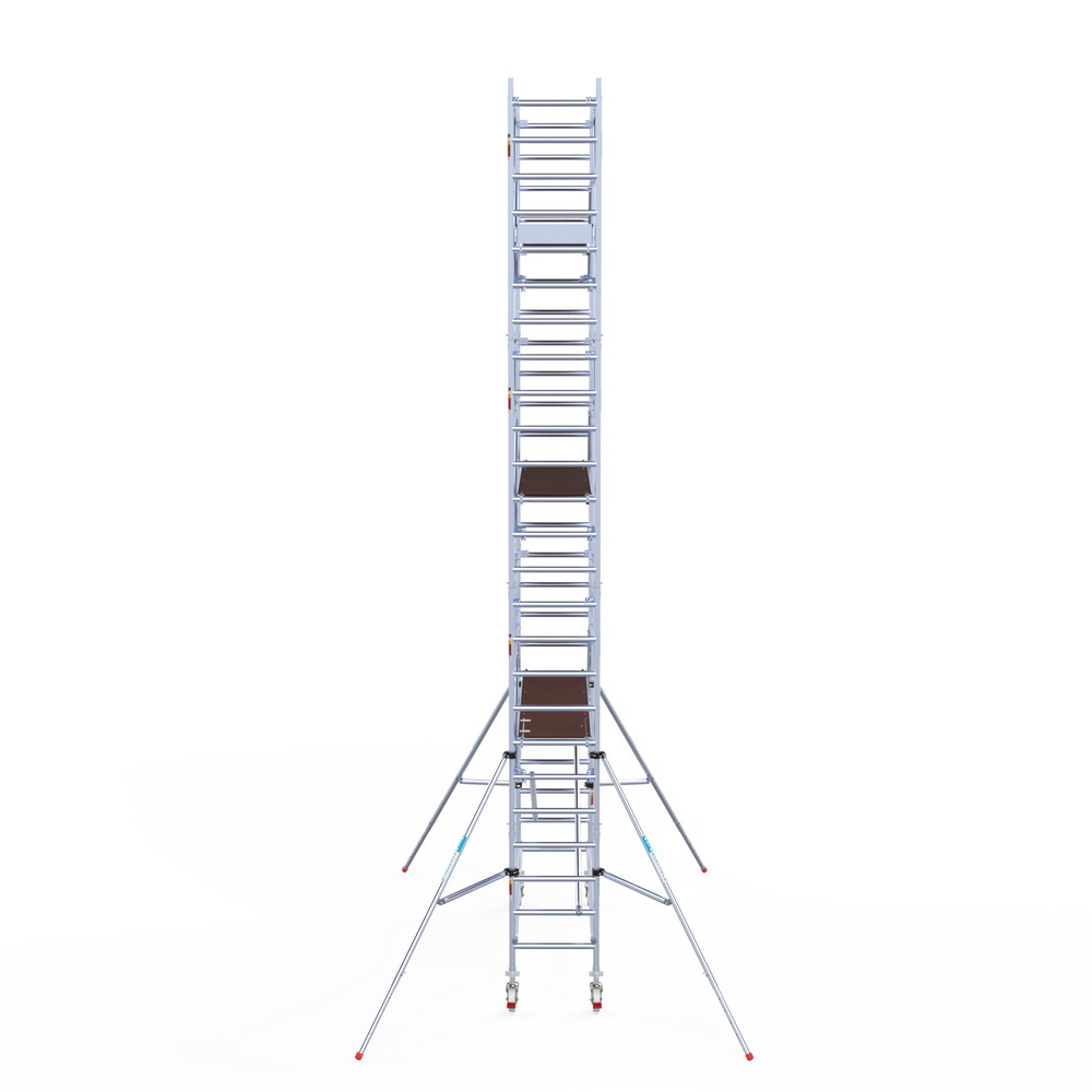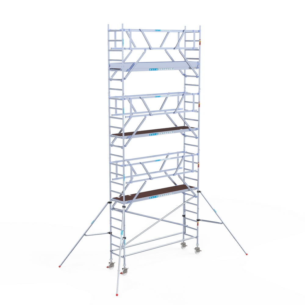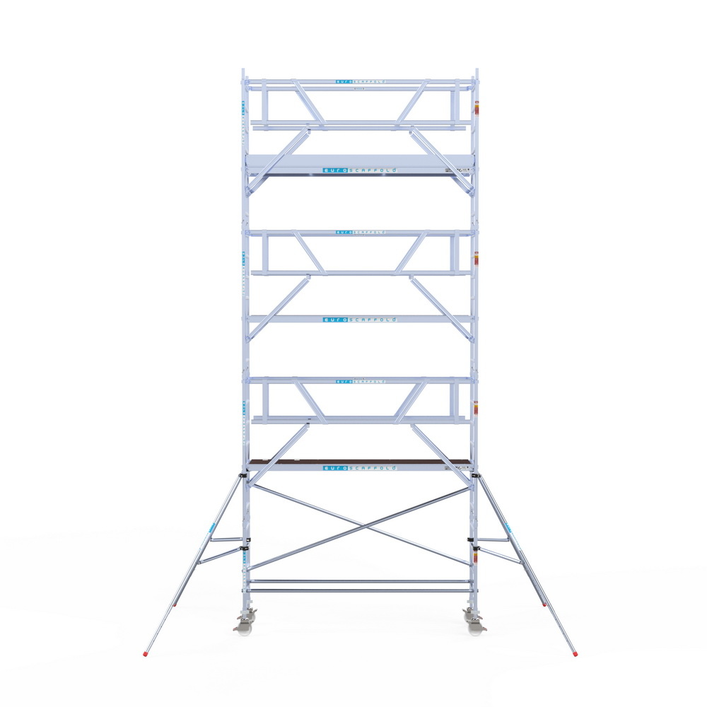 De Professional verrijdbare steiger van Euroscaffold is een volledig uitgevoerde professionele verrijdbare steiger volgens de professionele regelgeving EN1004. Daarmee ben je snel aan de slag. De opbouwsteiger is uitgevoerd met behulp van één voorloopleuning per etage bij gebruik bij een gevel, en 2 voorloopleuningen per etage bij vrijstaand gebruik. .