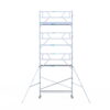 190 cm: Dit is de kleinste standaardmaat voor rolsteigers. Uitzonderingen zijn extra compacte kamersteigers of 1-persoonssteigers, die vaak platformlengtes van 120, 140 of 165 cm hebben. De 190 cm-variant wordt veel gebruikt bij kamersteigers en biedt voldoende ruimte om alleen comfortabel te werken.