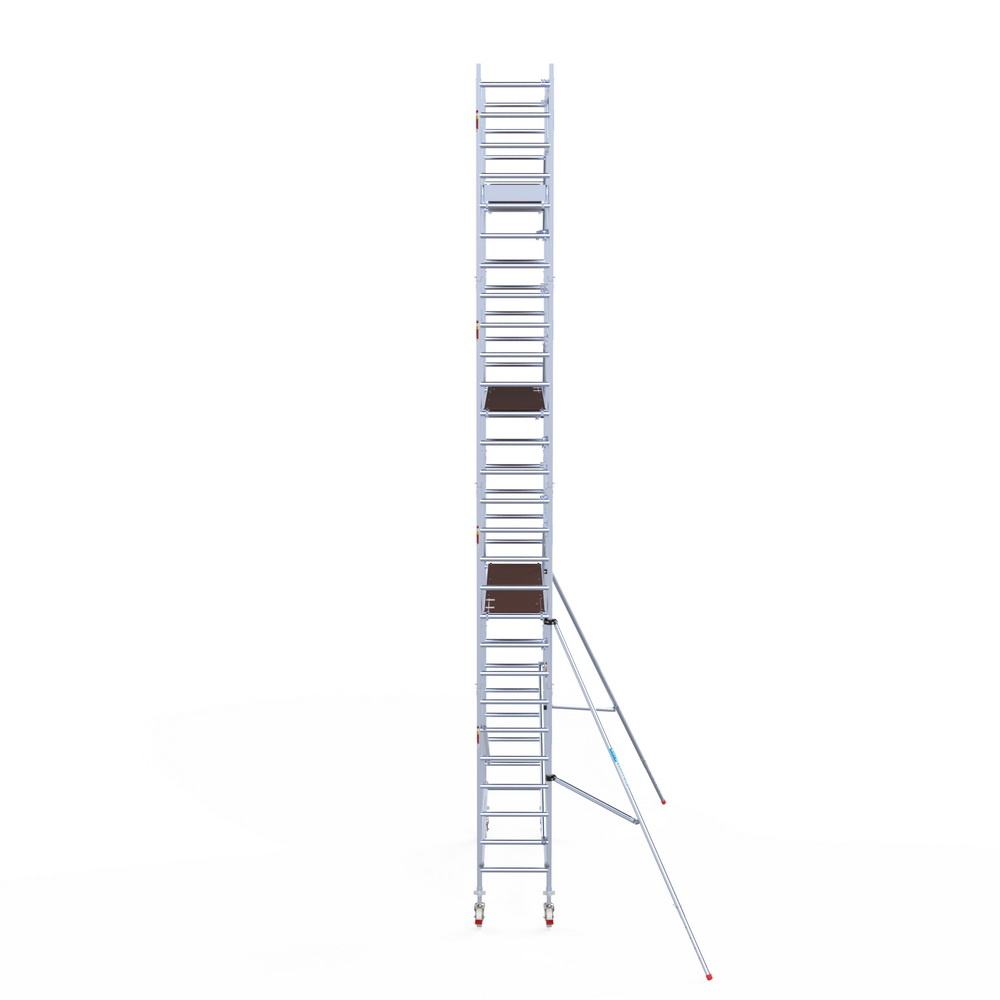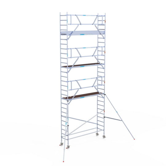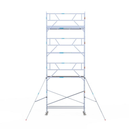 190 cm: Dit is de kleinste standaardmaat voor rolsteigers. Uitzonderingen zijn extra compacte kamersteigers of 1-persoonssteigers, die vaak platformlengtes van 120, 140 of 165 cm hebben. De 190 cm-variant wordt veel gebruikt bij kamersteigers en biedt voldoende ruimte om alleen comfortabel te werken.