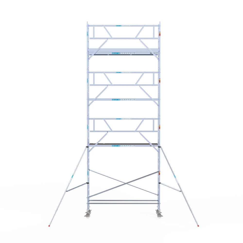 De platformen zijn standaard voorzien van een hoogwaardig houten deck, maar zijn ook te verkrijgen in het lichtere Carbondeck. De rolsteiger wordt geleverd met behulp van de verbeterde AGS-PRO voorloopleuning en volledig gemaakt met een aluminium kantplankenset, en voorzien van kwalitatieve verstelbare Nylon zwenkwielen. De professional rolsteiger van Euroscaffold wordt in eigen fabriek gemaakt en is voorzien van een TÜV-certificaat.