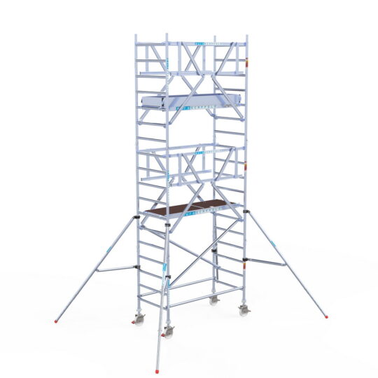190 cm: Dit is de kleinste standaardmaat voor rolsteigers. Uitzonderingen zijn extra compacte kamersteigers of 1-persoonssteigers, die vaak platformlengtes van 120, 140 of 165 cm hebben. De 190 cm-variant wordt veel gebruikt bij kamersteigers en biedt voldoende ruimte om alleen comfortabel te werken.