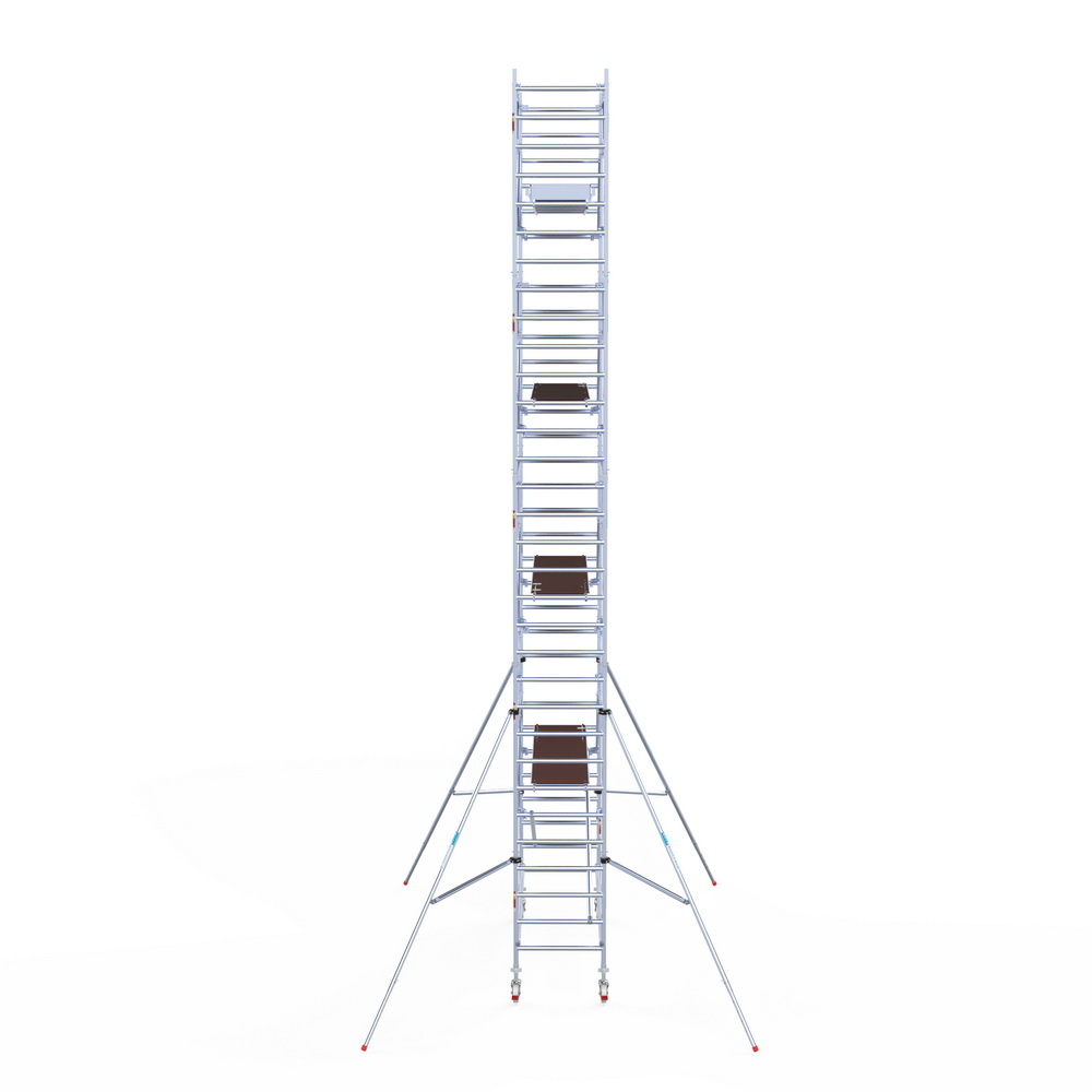 305 cm: Dit is, naast de zeldzame 400 cm-variant, de grootste standaardmaat. Deze lengte is ideaal als je de steiger regelmatig moet verplaatsen, omdat je met een langer platform minder vaak hoeft te herpositioneren. Deze platformlengte is zwaar, wij adviseren hier altijd voor carbon te kiezen.