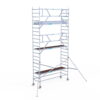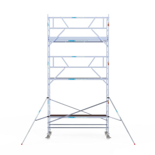 190 cm: Dit is de kleinste standaardmaat voor rolsteigers. Uitzonderingen zijn extra compacte kamersteigers of 1-persoonssteigers, die vaak platformlengtes van 120, 140 of 165 cm hebben. De 190 cm-variant wordt veel gebruikt bij kamersteigers en biedt voldoende ruimte om alleen comfortabel te werken.
