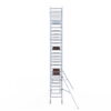 190 cm: Dit is de kleinste standaardmaat voor rolsteigers. Uitzonderingen zijn extra compacte kamersteigers of 1-persoonssteigers, die vaak platformlengtes van 120, 140 of 165 cm hebben. De 190 cm-variant wordt veel gebruikt bij kamersteigers en biedt voldoende ruimte om alleen comfortabel te werken.