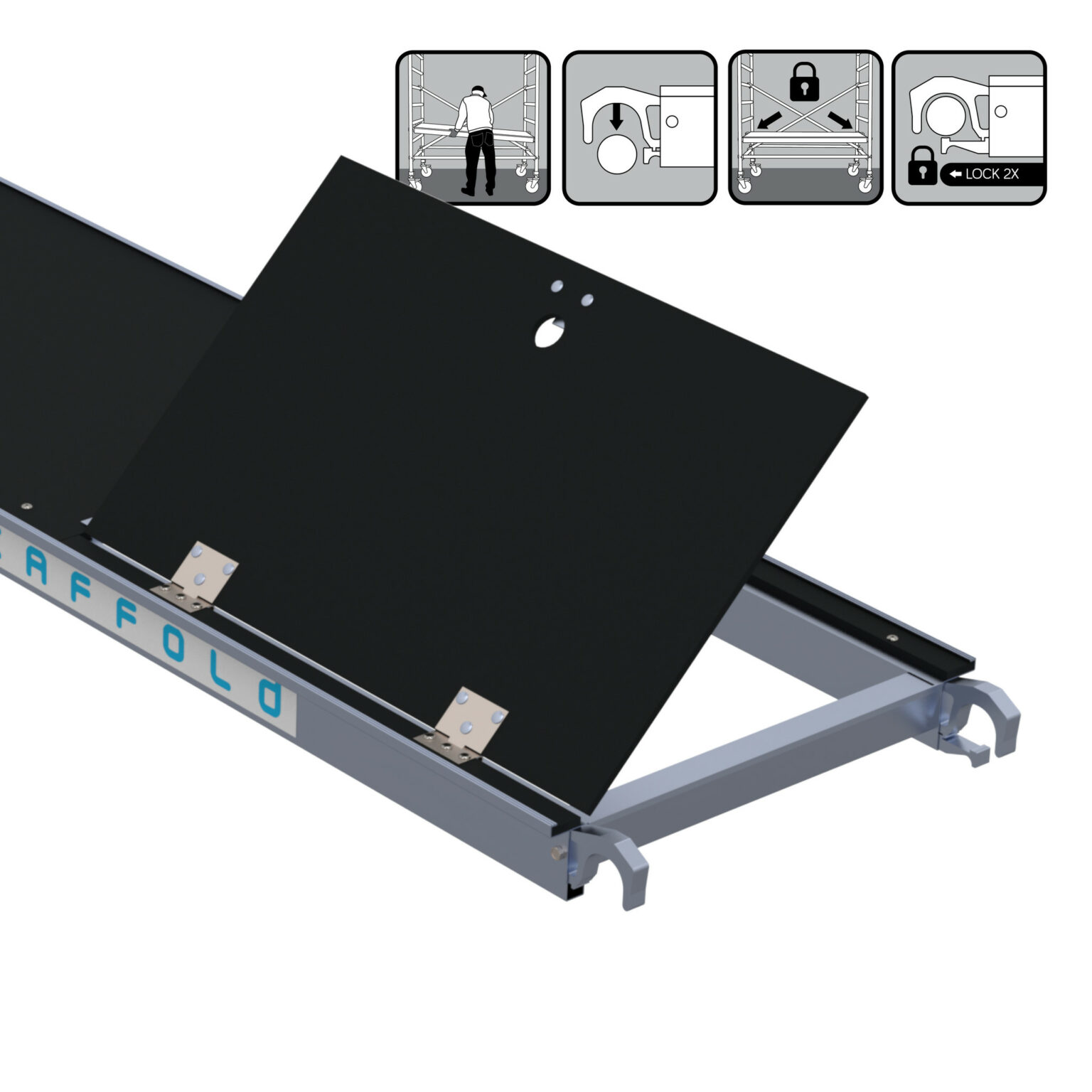 Verkrijgbaar in de framebreedte 75 cm, 90 cm, en 135 cm. Betrouwbaar bij elke klus. . De verkrijgbare platform lengtes zijn 190 cm, 250 cm, en 300 cm. .