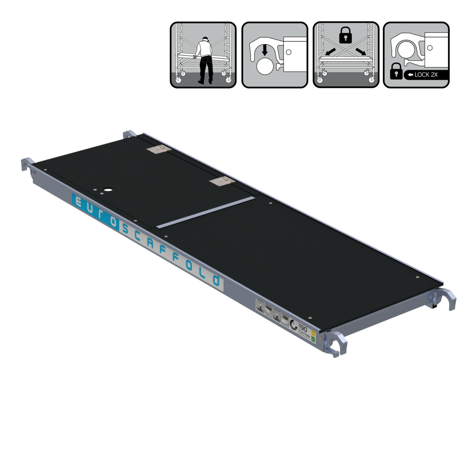 De platformen zijn standaard voorzien van een hoogwaardig houten deck, maar zijn ook te verkrijgen in het lichtere Carbondeck. De rolsteiger wordt geleverd met behulp van de verbeterde AGS-PRO voorloopleuning en volledig gemaakt met een aluminium kantplankenset, en voorzien van kwaliteitrijke verstelbare Nylon wielen. De professional rolsteiger van Euroscaffold wordt in eigen fabriek gemaakt en is voorzien van een TÜV-certificaat.